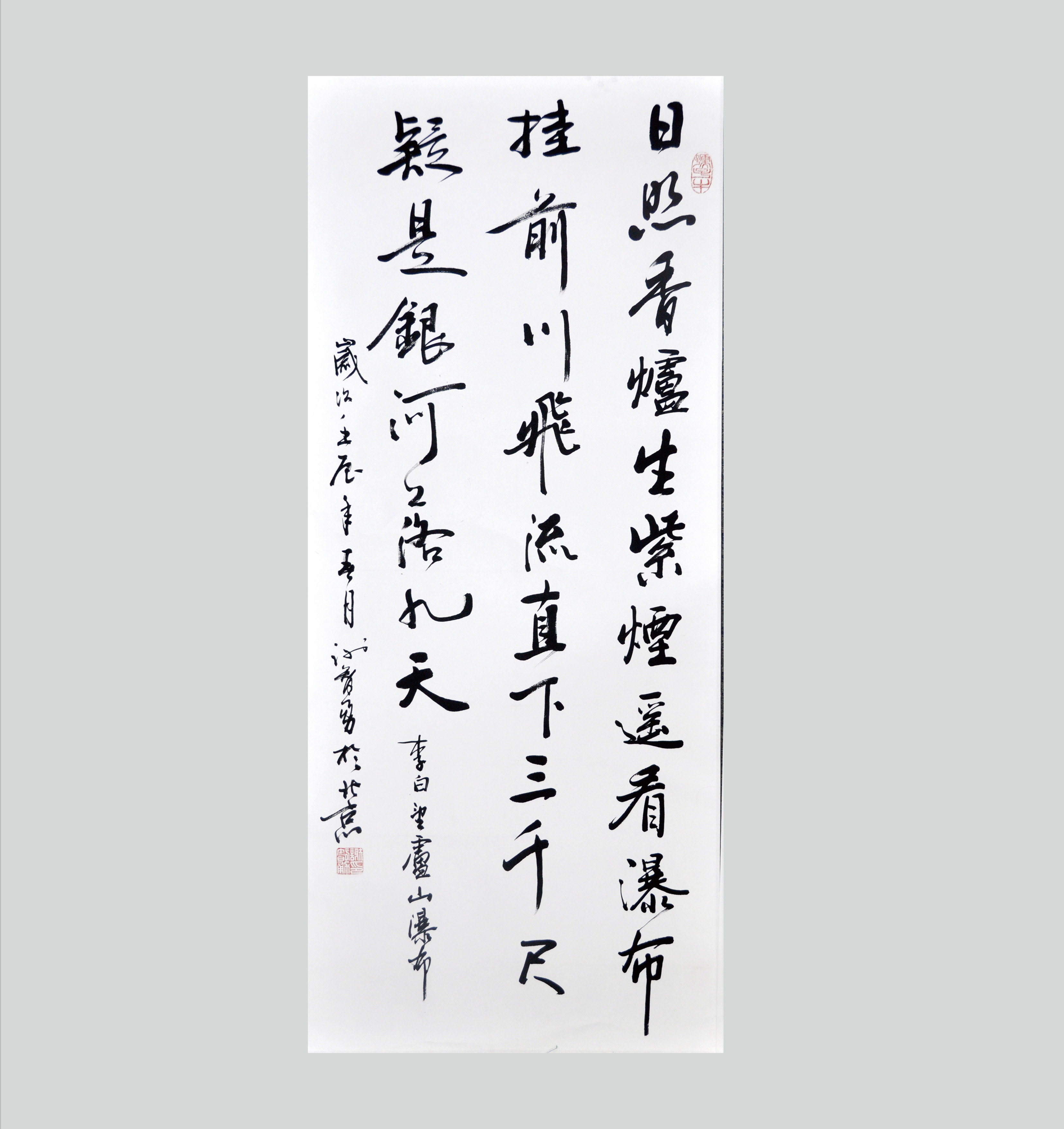 日照香炉生紫烟, 遥看瀑布挂前川。飞流直下三千尺, 疑是银河落九天。