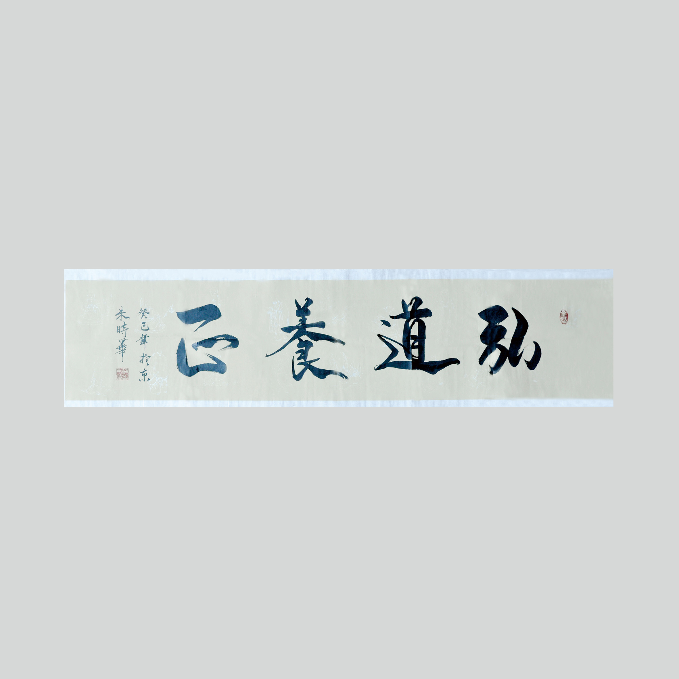 朱时华书法作品《弘道养正》纵34.5cm,横137cm。整幅作品力道尽显,收笔利落。弘道养正,其旨为对道德发扬光大,对正气的培育及调养。作品以此四字为准,彰显作者对艺术的热爱和理解。