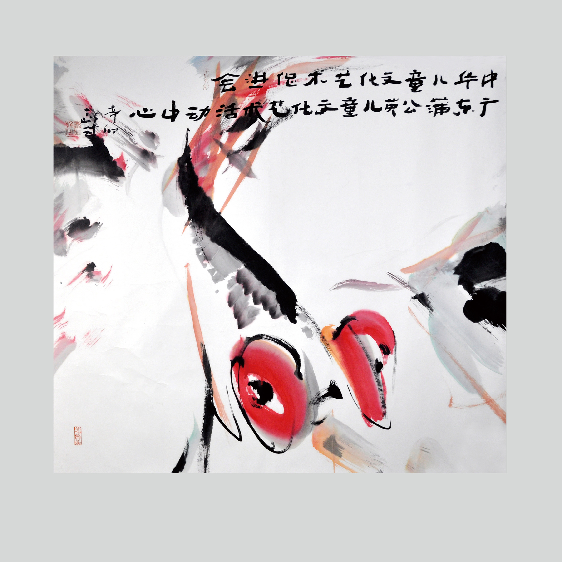 《金鱼》整幅画纵88cm,横95cm。作品将鱼放在画面中间表现,突出鱼眼,身形虚实搭配,水中神态呼之欲出,体现鱼翔浅底的轻灵。