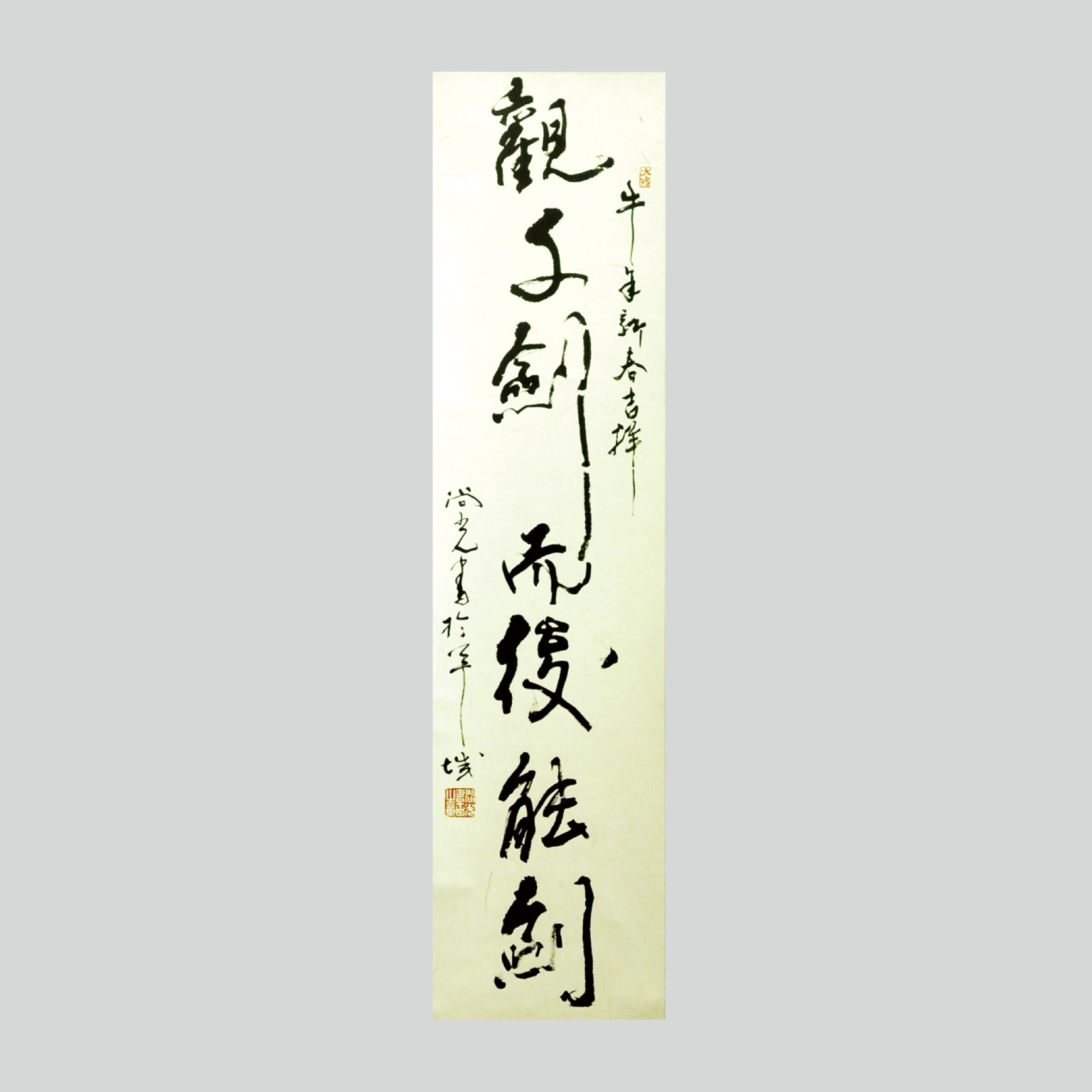 温尚光书法作品《观子剑而后能剑》,其字流畅,暗中深藏变化,柔中带刚。运墨燥湿互济,锋势劲锐,整幅作品稳重内敛,虽藏剑于心,然剑光已透。