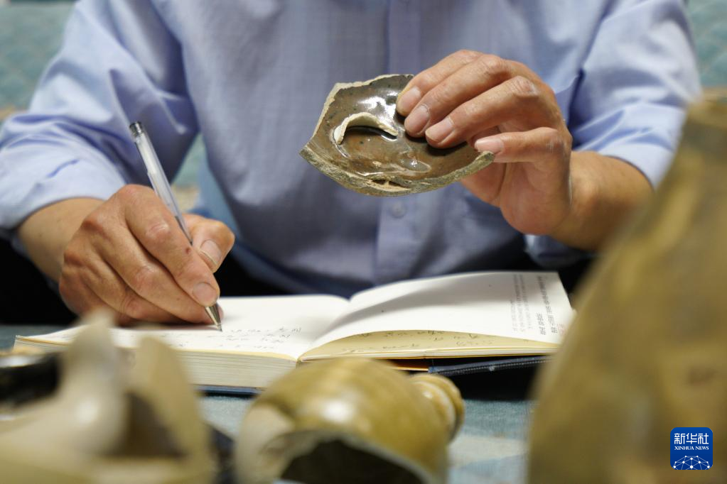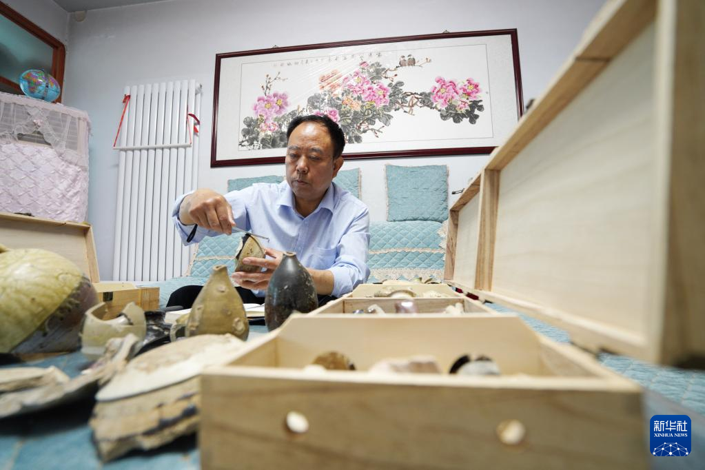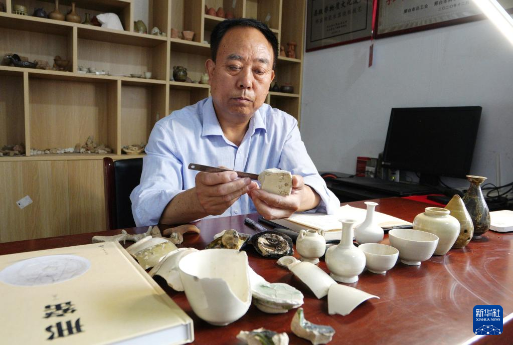 6月7日,李恒坤在家中研究邢窑古瓷片。 邢窑是隋唐时期北方著名的陶瓷烧制窑口,其遗址在河北省内丘县城周边分布很广。57岁的李恒坤已与邢瓷打了20多年交道,收集到的瓷片和窑具有几十万件,2015年,李恒坤创建了工作室专门研究邢窑修复烧造技艺,将传统技艺与现代技术融合,取得了多项邢窑烧造修复创新成果。 新华社记者 朱旭东 摄 6月7日,李恒坤(左)在内丘县邢窑遗址博物馆与工作人员交流。 邢窑是隋唐时期北方著名的陶瓷烧制窑口,其遗址在河北省内丘县城周边分布很广。57岁的李恒坤已与邢瓷打了20多年交道,收集到的瓷片和窑具有几十万件,2015年,李恒坤创建了工作室专门研究邢窑修复烧造技艺,将传统技艺与现代技术融合,取得了多项邢窑烧造修复创新成果。 新华社记者 朱旭东 摄 6月7日,李恒坤在户外古窑址寻找邢窑古瓷片。 邢窑是隋唐时期北方著名的陶瓷烧制窑口,其遗址在河北省内丘县城周边分布很广。57岁的李恒坤已与邢瓷打了20多年交道,收集到的瓷片和窑具有几十万件,2015年,李恒坤创建了工作室专门研究邢窑修复烧造技艺,将传统技艺与现代技术融合,取得了多项邢窑烧造修复创新成果。 新华社记者 朱旭东 摄 6月7日,李恒坤在家中对收集的邢窑古瓷片进行登记。 邢窑是隋唐时期北方著名的陶瓷烧制窑口,其遗址在河北省内丘县城周边分布很广。57岁的李恒坤已与邢瓷打了20多年交道,收集到的瓷片和窑具有几十万件,2015年,李恒坤创建了工作室专门研究邢窑修复烧造技艺,将传统技艺与现代技术融合,取得了多项邢窑烧造修复创新成果。 新华社记者 朱旭东 摄 6月7日,李恒坤在家中研究邢瓷瓷片。 邢窑是隋唐时期北方著名的陶瓷烧制窑口,其遗址在河北省内丘县城周边分布很广。57岁的李恒坤已与邢瓷打了20多年交道,收集到的瓷片和窑具有几十万件,2015年,李恒坤创建了工作室专门研究邢窑修复烧造技艺,将传统技艺与现代技术融合,取得了多项邢窑烧造修复创新成果。