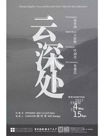 展览介绍: 2017年3月4日至4月15日,東京画廊+BTAP将举办由魏祥奇策划的“云深处:新朦胧主义四人展”展览,这也是本年度東京画廊+BTAP的首展,展览有泰祥洲,王舒野,叶剑青,朱建忠4位艺术家参加,展出约10余幅作品。