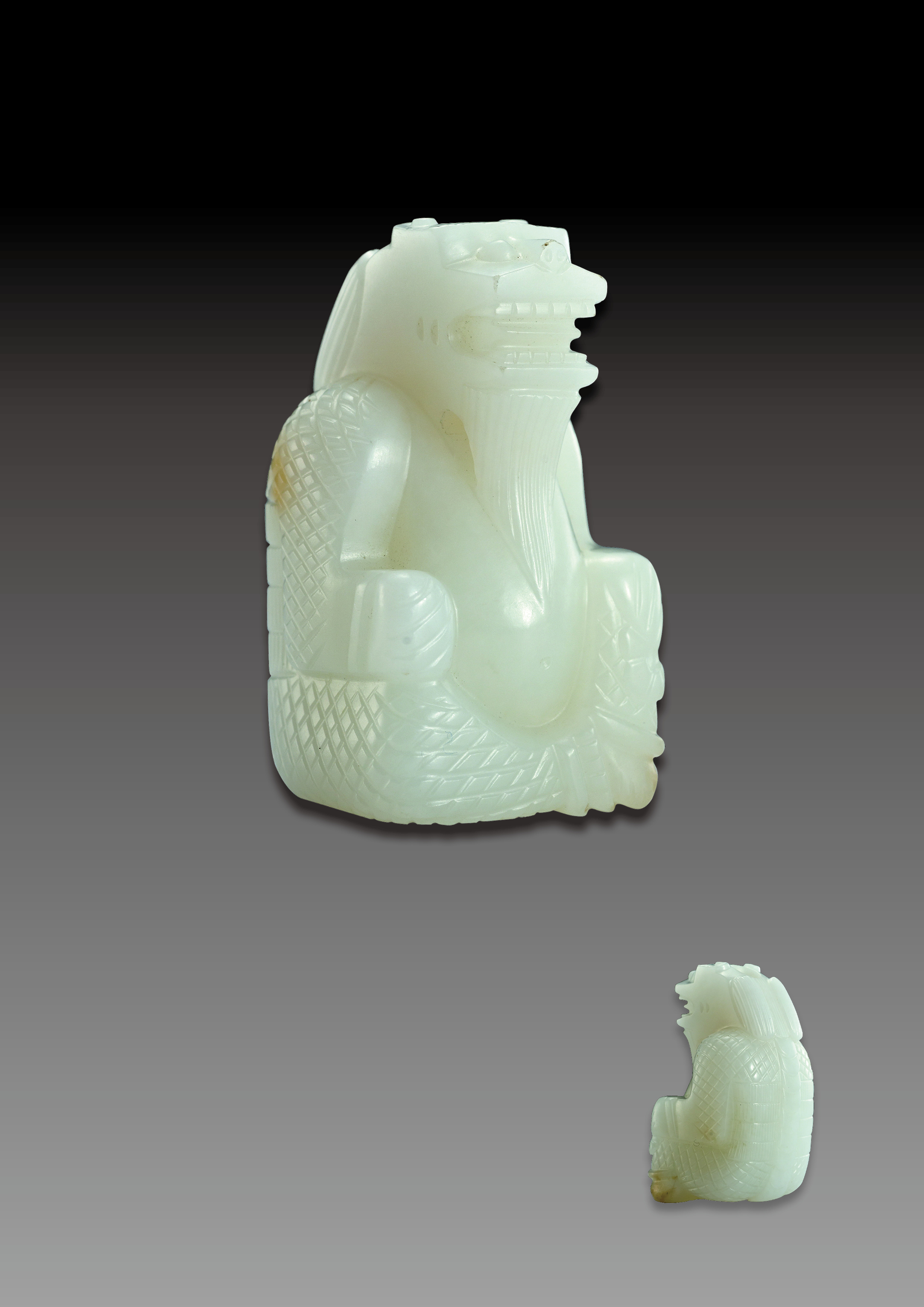 此件坐龙玉器选用和田玉籽料雕琢。玉质优良,雕刻纹络清晰,坐龙形象的设计构思奇妙,将传统腾云隐雾龙的形象有了颠覆,坐龙体现出的闲适之情与似人之姿,活泼的形象树立起来,更显憨态可掬。