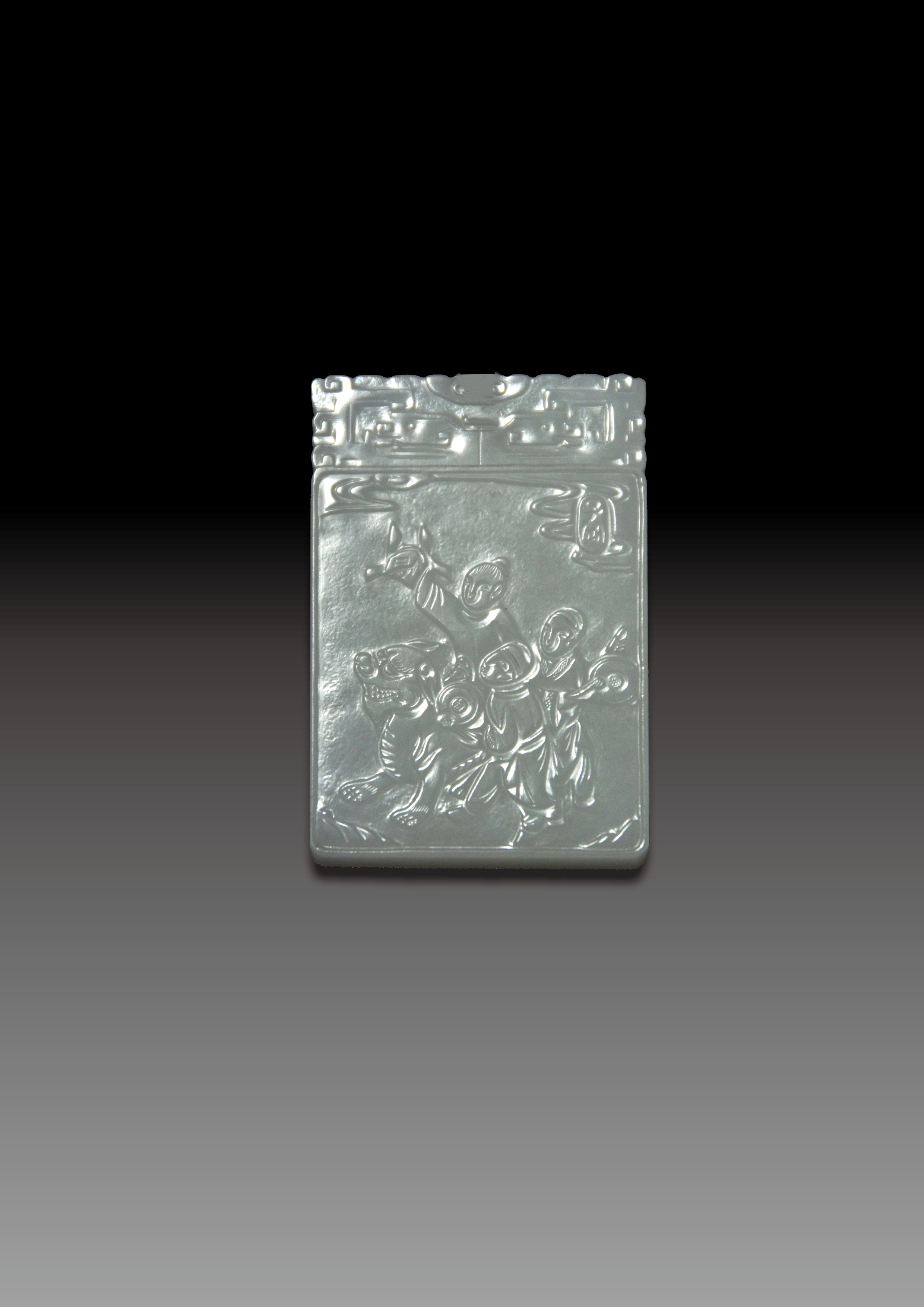 此件俄罗斯玉挂坠,玉质白,水感很强,表面油性大,玉器内部粥状纹细且干净,是一件很好的俄罗斯玉制作的挂饰。