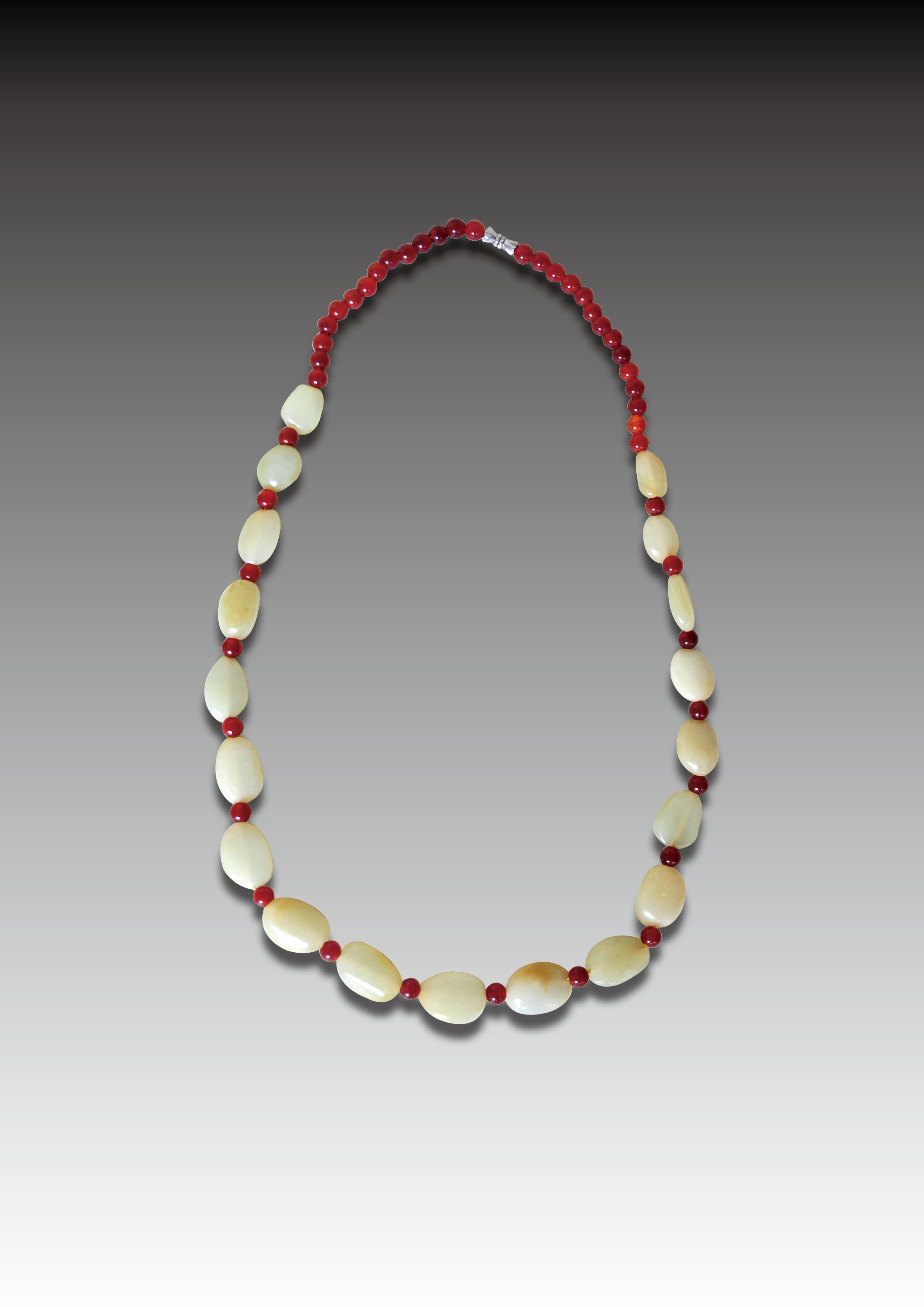 ,是一件现代工艺配制的青海玉挂链。