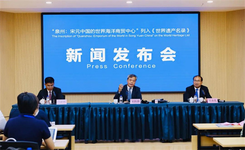“妥善保护、永续传承世界文化遗产是中国政府对国际社会的庄严承诺。国家文物局将继续支持福建省、泉州市做好泉州系列遗产和泉州古城的研究、保护、管理与展示,共同保护好、传承好、利用好这份珍贵的历史文化遗产。”7月26日上午,国家文物局副局长宋新潮在国家文物局、泉州市人民政府共同召开的“泉州:宋元中国的世界海洋商贸中心”列入《世界遗产名录》新闻发布会上表示。