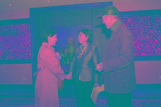 刘昆倩委员向省政府副秘书长江海燕、广州市天河区副区长林玲介绍画展