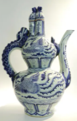 左:(元)青花牡丹龙纹尊,恭王府博物馆藏 右:现代工艺臆造品