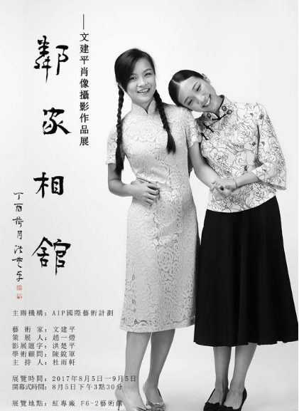2017年8月5日,由AIP国际艺术计划主办的“邻家相馆——文建平肖像摄影作品展”在广州红专厂 F6-2艺术馆开幕。本次展览是以围绕家庭为主题的肖像作品展览,暑期正值学考发榜,准备离家上学的时刻,家庭 肖像作品对于在家的长辈及远游的孩子都具有特殊的意义,其感性属性及亲情元素容易引起家庭成员亲情的共鸣。本次展览将持续到9月5日。