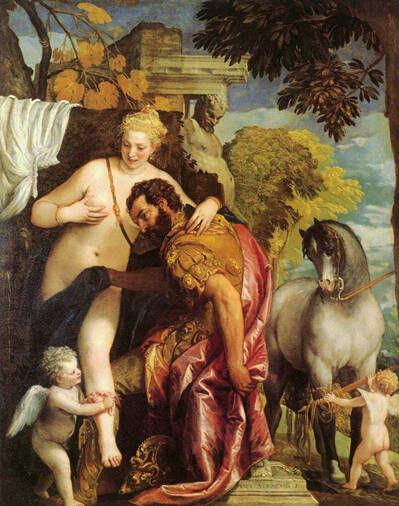 维纳斯在英俊健美的战神那里找到了暂时的依托,尽情的享受做母亲的乐趣。