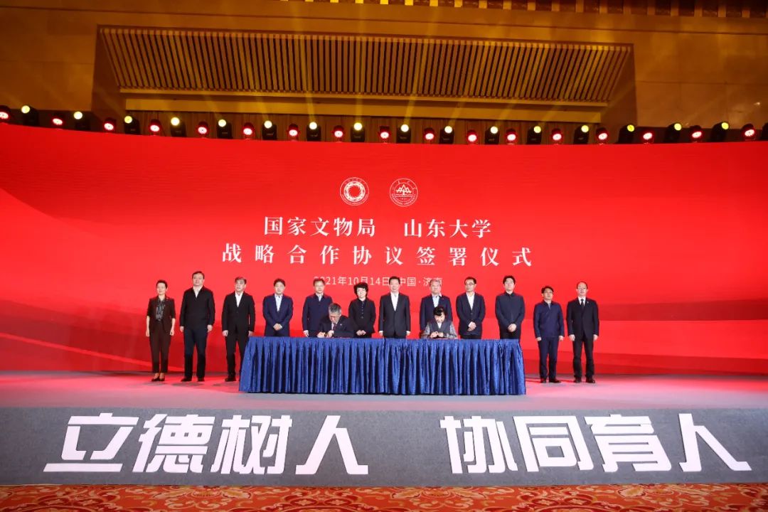 10月14日,国家文物局与山东大学在济南签署《国家文物局、山东大学战略合作协议》(以下简称《协议》)。教育部副部长翁铁慧,文化和旅游部副部长、国家文物局局长李群,山东省人民政府副省长王心富出席签署仪式。教育部、国家文物局有关部门和直属单位负责同志参加签署仪式。