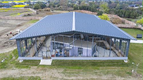 这是3月1日拍摄的三星堆遗址考古发掘现场保护大棚内的工作舱(无人机照片)。新华社记者 沈伯韩 摄