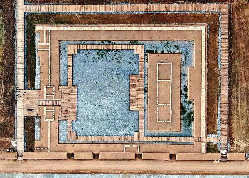 这是2019年10月16日拍摄的二里头考古遗址公园(无人机照片)。新华社记者 李安 摄