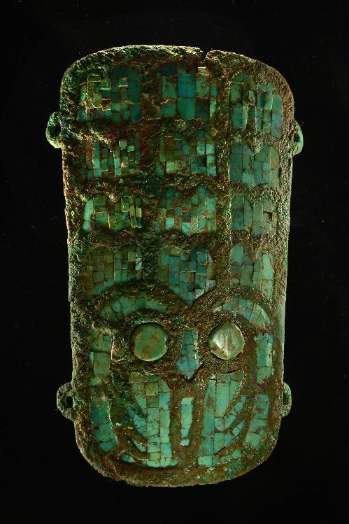 这是二里头遗址出土的镶嵌绿松石铜牌饰(资料照片)。新华社发(中国社会科学院考古研究所二里头工作队供图)