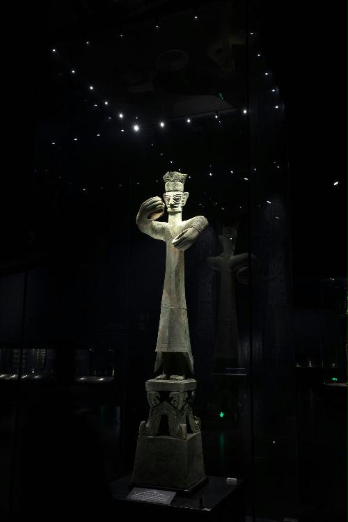 这是在位于四川省广汉市的三星堆博物馆拍摄的1986年出土于三星堆2号“祭祀坑”的青铜大立人(3月17日摄)。新华社记者 沈伯韩 摄