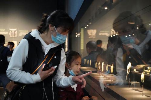 游客在三星堆博物馆内参观(4月4日摄)。新华社记者 刘梦琪 摄