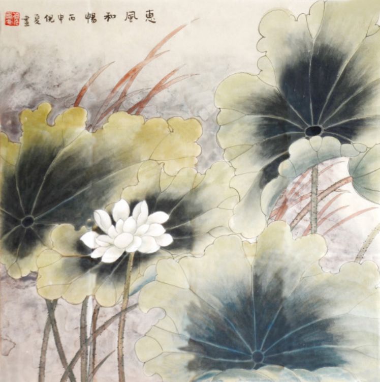 此幅画作以工笔的手法展现了盛夏之荷的娉婷。荷本身就有一种磅礴的气势,画家渲染了盛夏荷生命旺期的姿态:大片厚重的荷叶,亮丽的荷花,色彩恰到好处,浓淡适宜。荷一直是清廉高洁的代表,周敦颐的《爱莲说》中说过“莲之出淤泥而不染,濯清涟而不妖”;荷也有“和和美美”之意,寓意生活美满幸福。现藏于中国艺术品鉴定网。