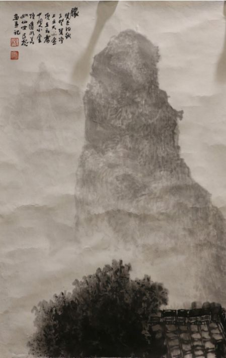 “朦”一画,画面重点在于朦胧感,展现的不仅是山体渐逝隐去的朦胧,还有画面意境的朦胧,画家以水墨一点一滴地晕染出这种朦胧的景色。不仅如此,画家还以浓墨描绘出前景的建筑以及树木,以加强背景中山体的虚渺感。现藏于中国艺术品鉴定网。