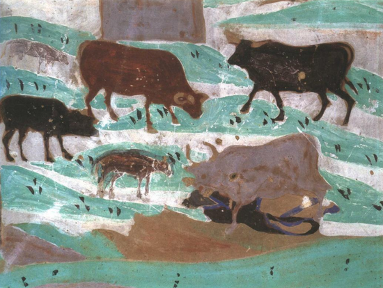 受惊的野牛 西魏 莫高窟249窟 北坡