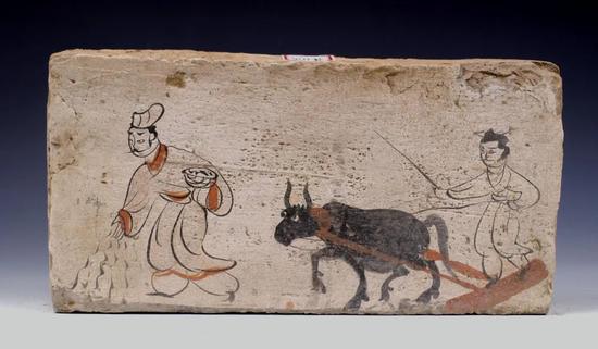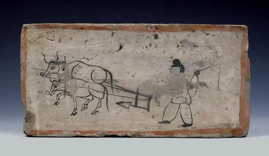 高台骆驼城95年墓魏晋《牵牛 耱地图》