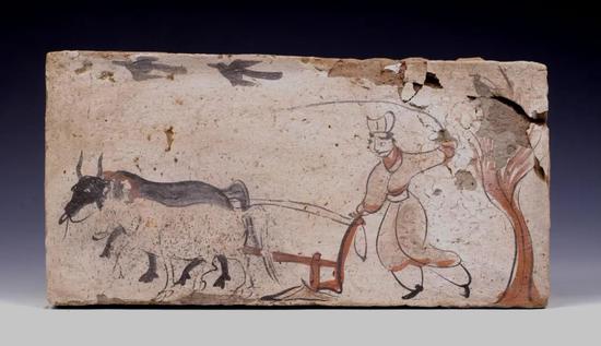 汉代“重农抑商”政策与铁犁的逐步推广,奠定了中国农业经济道路的基础。正如《齐民要术》所说:“欲善其事,先利其器”。远至封建社会,近至当今生活,牛都是农业生产的主要役畜,勤勉耕耘,助臂农事。牛耕作为农业种植活动的第一步工具的进步不断推动农业技术的革新,壁画中呈现着曹魏时期的“二牛抬杠”逐渐演变到西晋的“一牛一犁”形式,也负载着农耕文化的题材源远流长。