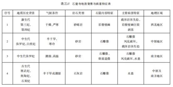 上述分类以文物本体为主体,考虑到地质结构属性,但不能充分体现石窟寺特征,分类对象界定不够明确,各自孤立,系统性体现尚不够充分。石窟寺及石刻病害类型界定不系统、不规范的问题会影响文物保护技术信息的交流和学科体系的建立。
