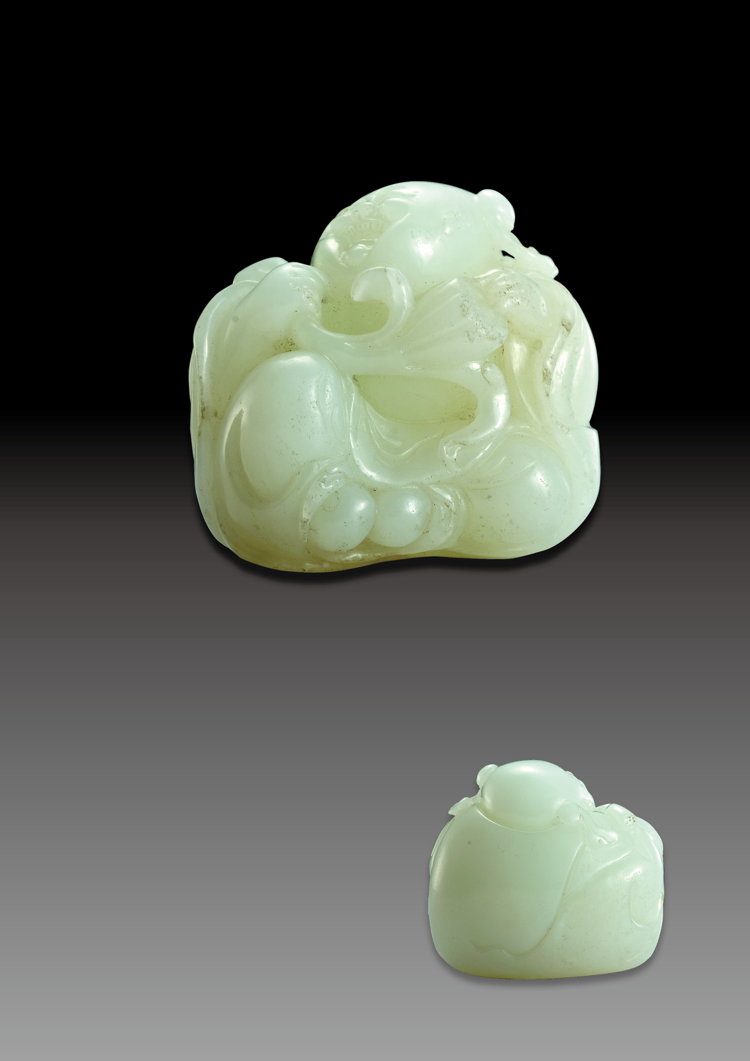 此件和田白玉籽料,圆润饱满,质地油糯,雕琢的佛公阔嘴大笑,笑口常开,童心未泯的样子,极富感染力;形态团圆完满,象征“一团和气”或“一团福(佛)气”寓意吉祥美满。