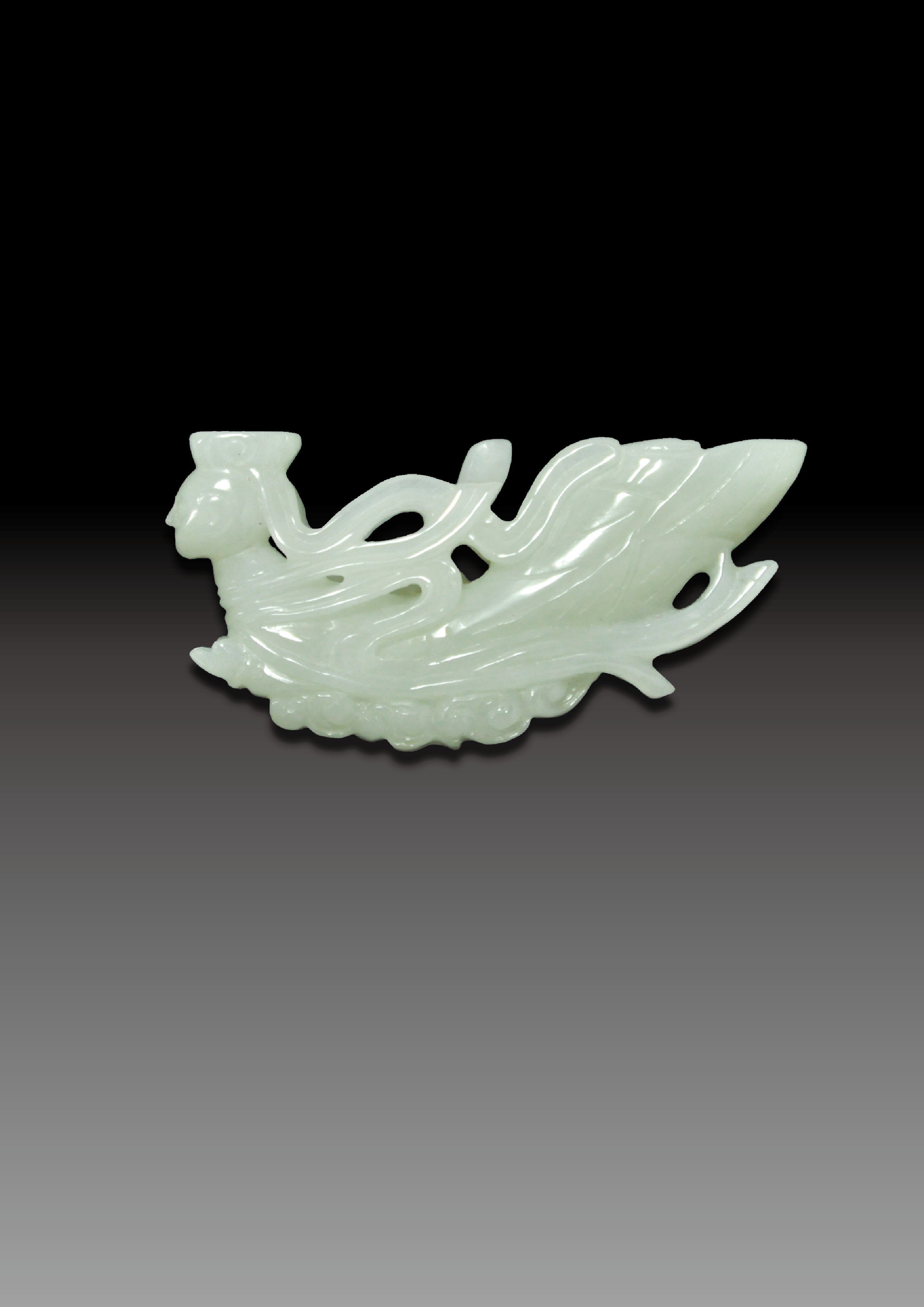 现代玉工仿唐代飞天,整件玉器白中泛灰,以光照射,玉器内呈现米粥状纹路,均匀干净,但水感过重,且有水纹,油润度偏低,整件玉器纹饰雕琢流畅,现代抛光工艺运用良好,为现代玉工用青海玉仿制唐代的飞天。