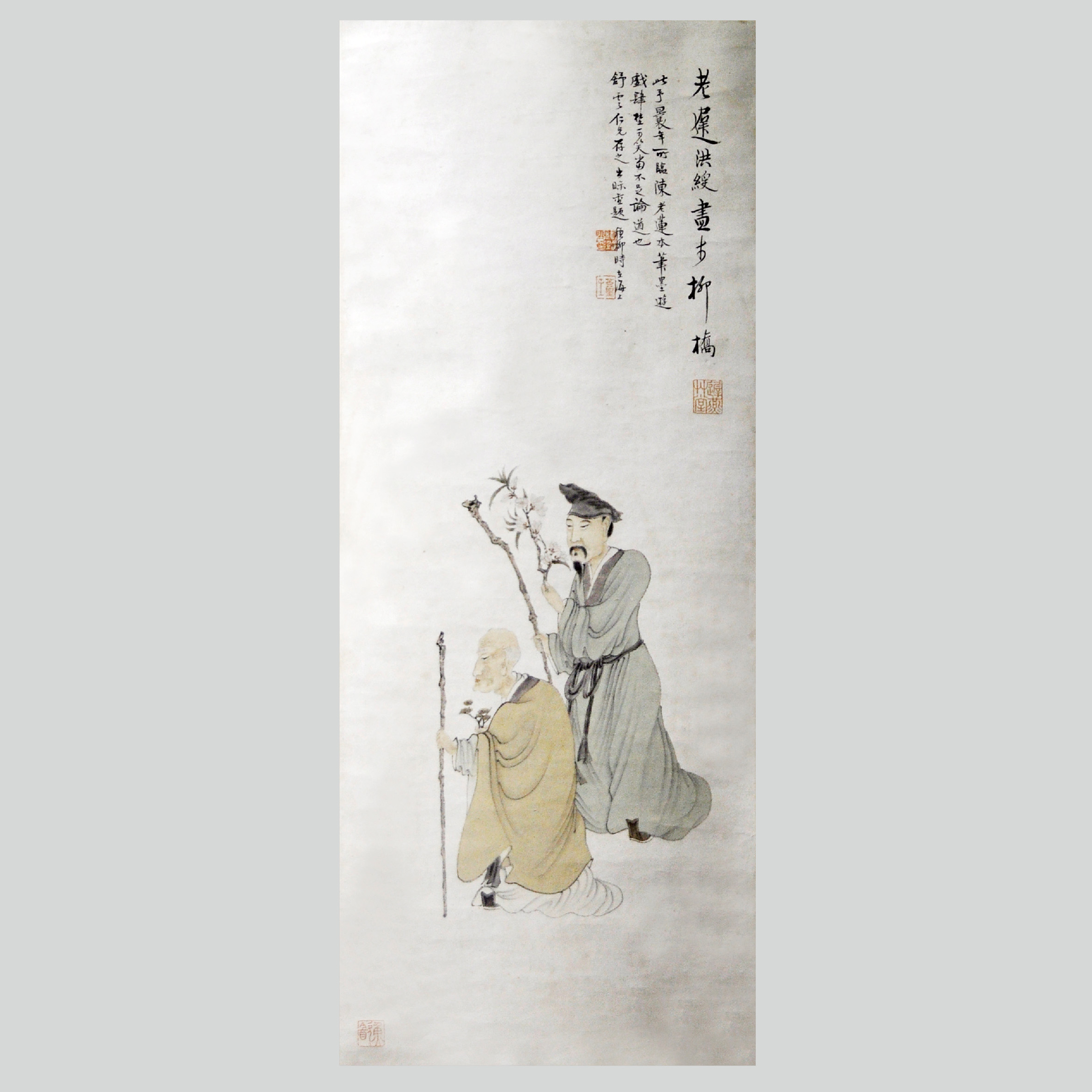 谢稚柳是现代著名书画大家,也是著名书画鉴定专家。他的这幅作品设色古雅,一丝不苟、神貌散发出宋人院体绘画特有的拙朴。繁复点染,凝练沉稳,贴近古人灵魂。从画面双款来看,书法已经逐渐脱开陈老莲瘦硬古拙,更显丰腴