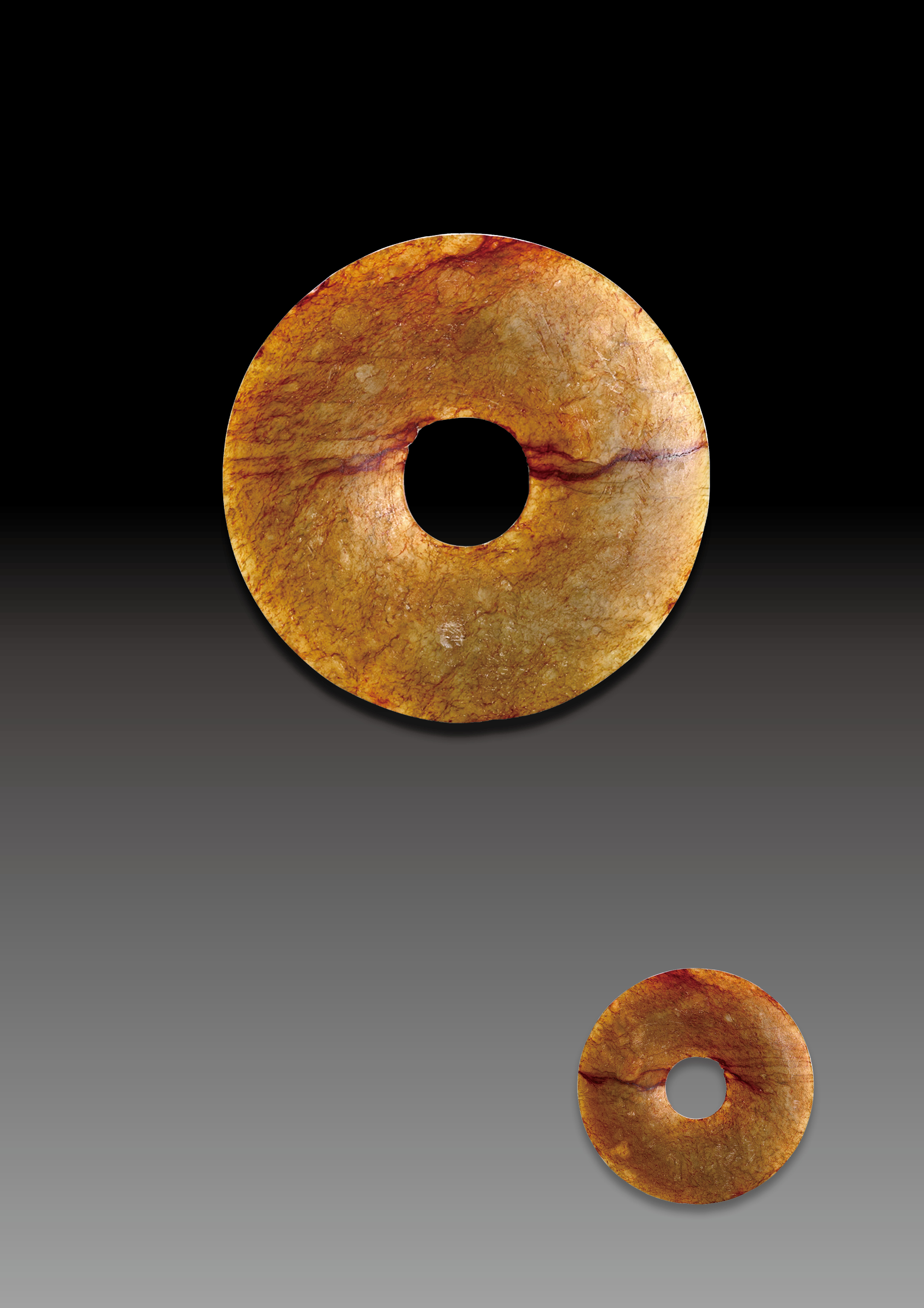 此件素玉璧内外立边均规整,无机械加工痕迹,整件器外表白中有褐色,有柳根纹。素璧最早出现于新石器时代,最引人注目的有三个出土地,一是良渚文化遗址;二是广汉地区早期文化遗址;三是齐家文化遗址。商代素璧在当时主要用于礼器。