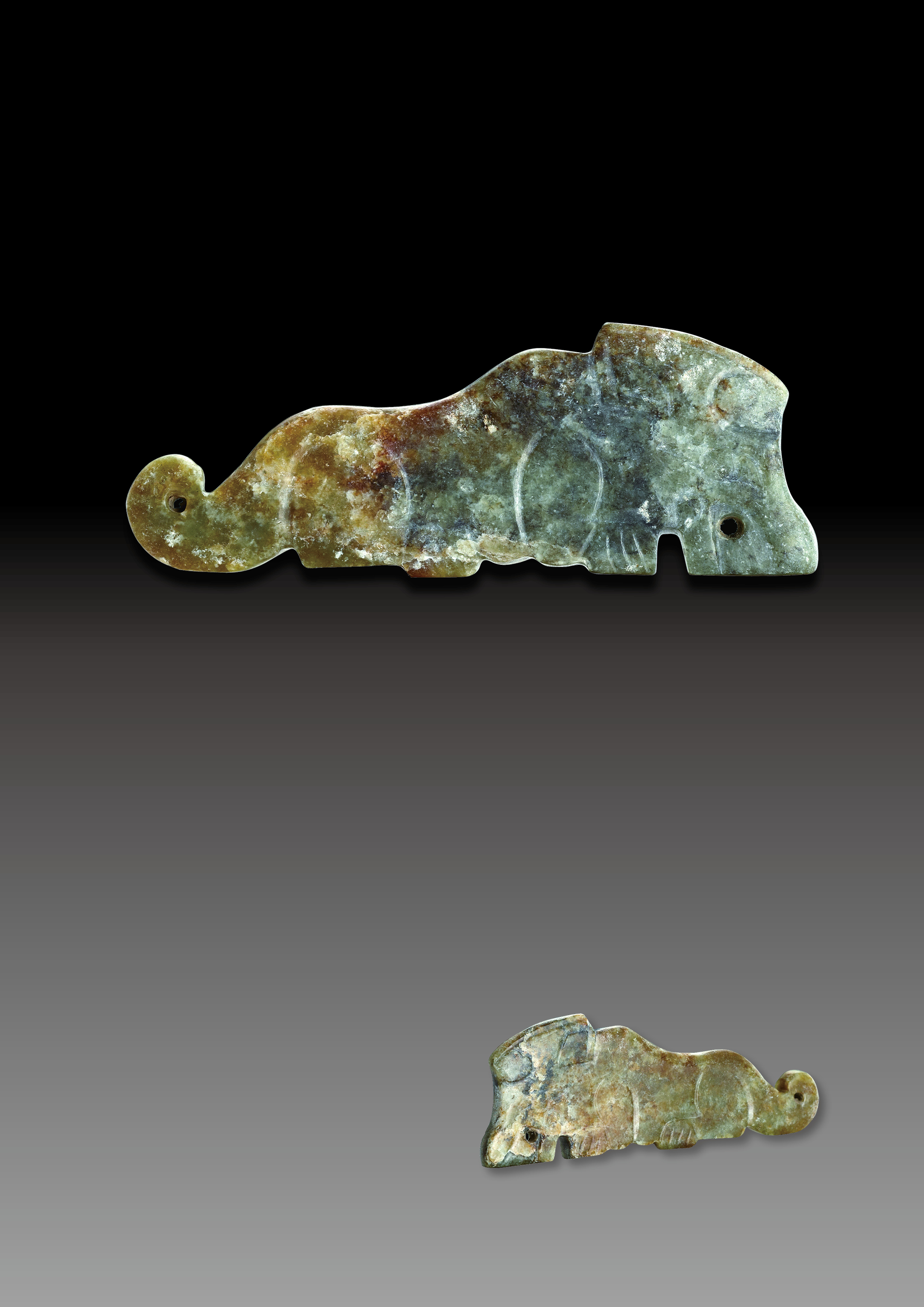 此件玉器为汉代玉虎。治玉有明显的“汉八刀”特征。风格简约雄健,线条疏放硬朗,造型自然豪迈。整体设计严肃,虎背与虎尾的曲线厚重,朴实无华,受沁明显,更突显历史的沧桑之感。
