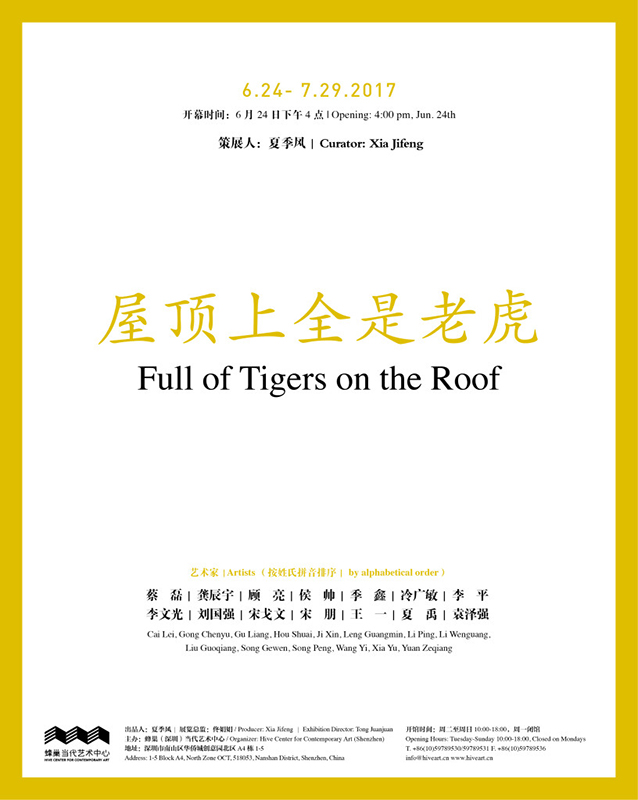 展览介绍: 继开馆展“灵晕与气韵:当代艺术的十二个东方样本”及“艺术的仁慈:十二位70后艺术家”之后,蜂巢(深圳)当代艺术中心再次推出群展“屋顶上全是老虎”,创作媒介涉及架上绘画、装置、录像、摄影等。