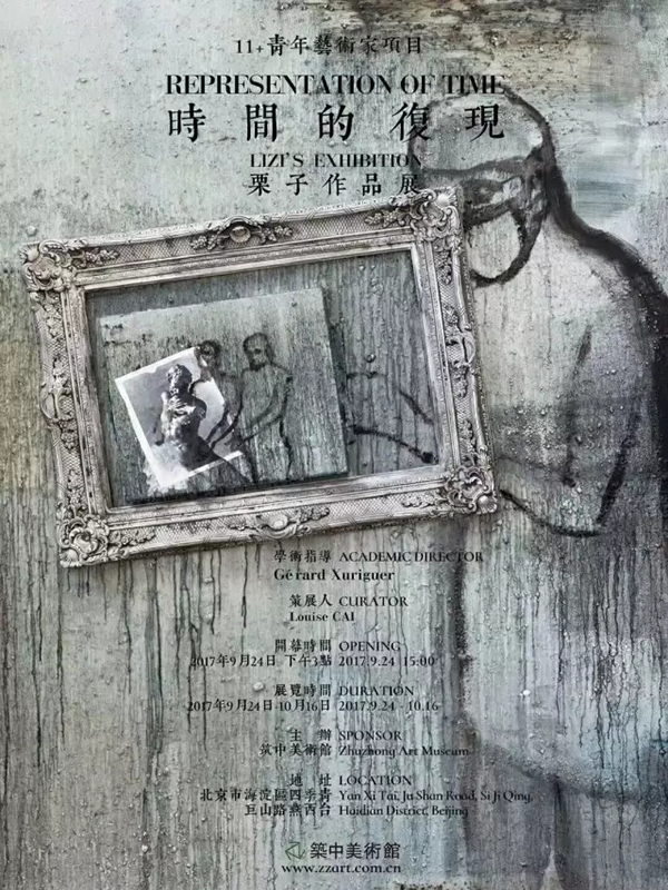 展览介绍: 2017年9月24日(周日)下午15时,“时间的复现——栗子作品展”将在筑中美术馆(新馆第Ⅲ展厅)开幕。本次展览是“11+青年艺术家项目”的第3期展览,由Louise CAI策划,欧洲著名艺评家Gérard Xuriguera担任学术主持,贾方舟、 Alessandro Riva 、王萌 、Maria Laura Perilli 、李淼担任学术顾问。